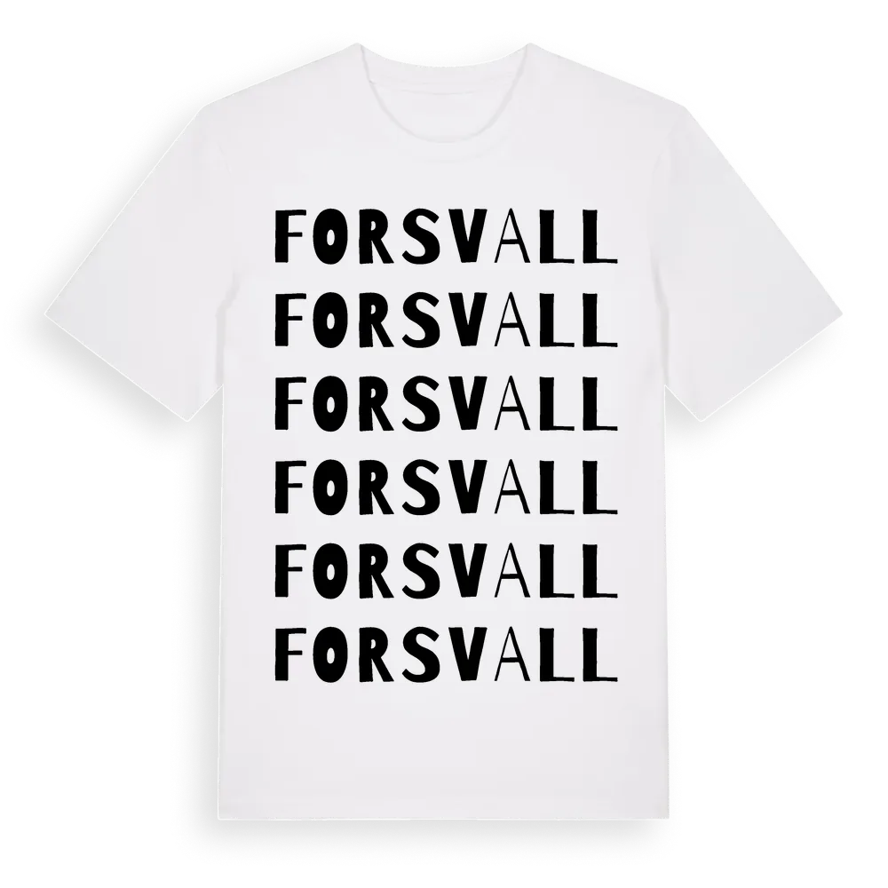 Forsvall ordlek t-shirt är inspirerad av byn Forsvall i Västerbottens län, Sverige. Tröjan är designad för dig som har en speciell koppling till platsen – oavsett om du bor här, har rötterna här eller bara älskar Forsvall.