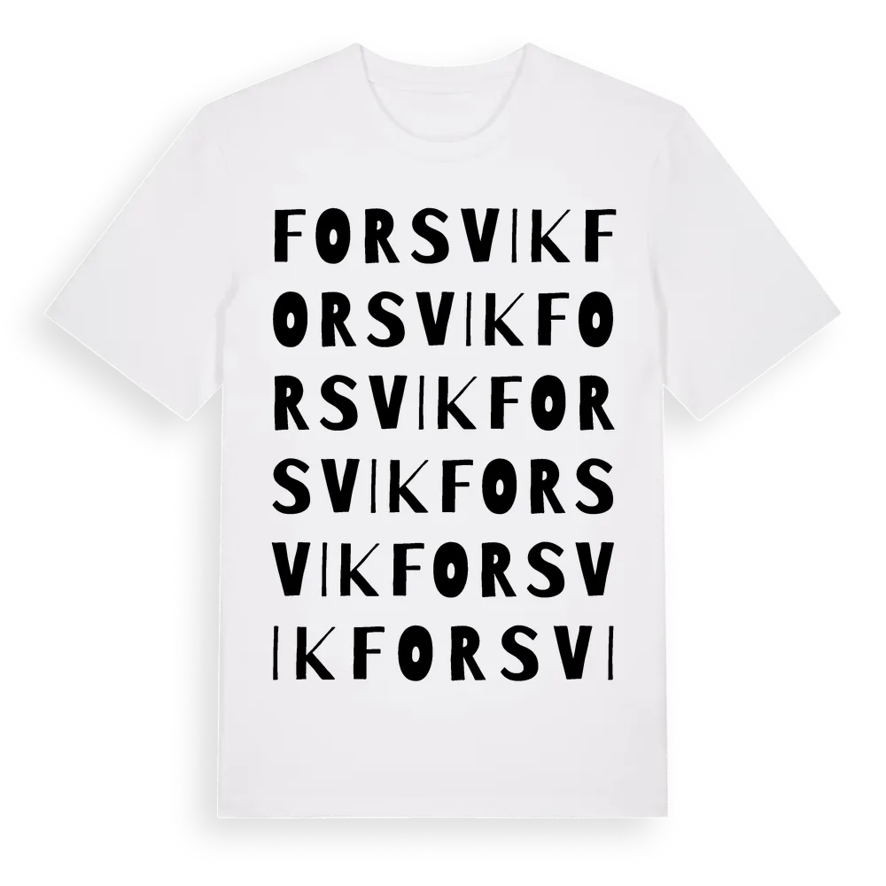 Forsvik ordlek t-shirt är inspirerad av byn Forsvik i Västerbottens län, Sverige. Tröjan är designad för dig som har en speciell koppling till platsen – oavsett om du bor här, har rötterna här eller bara älskar Forsvik.
