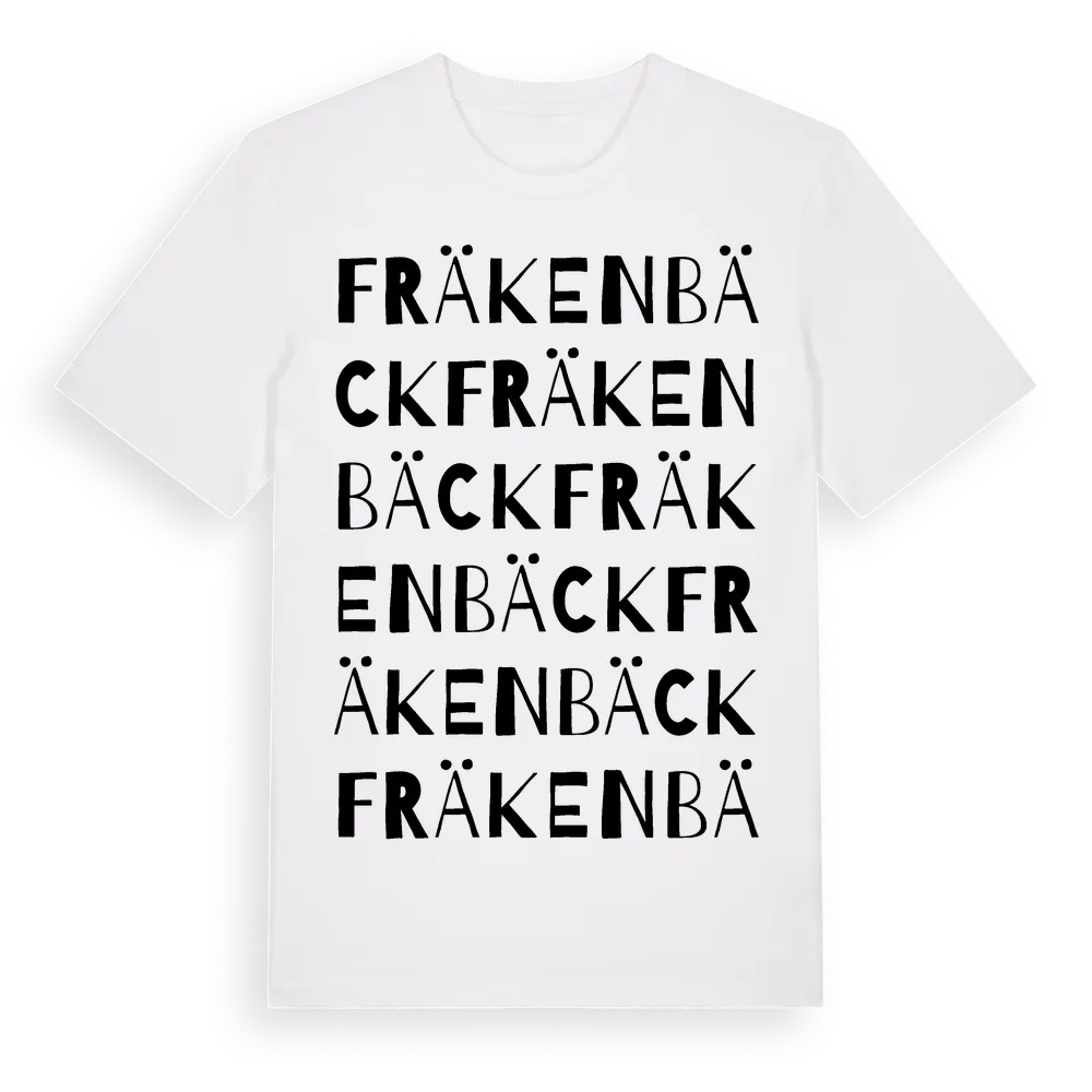 Fräkenbäck ordlek t-shirt är inspirerad av Fräkenbäck i Västerbottens län, Sverige. Tröjan är designad för dig som har en speciell koppling till platsen – oavsett om du bor här, har rötterna här eller bara älskar Fräkenbäck.