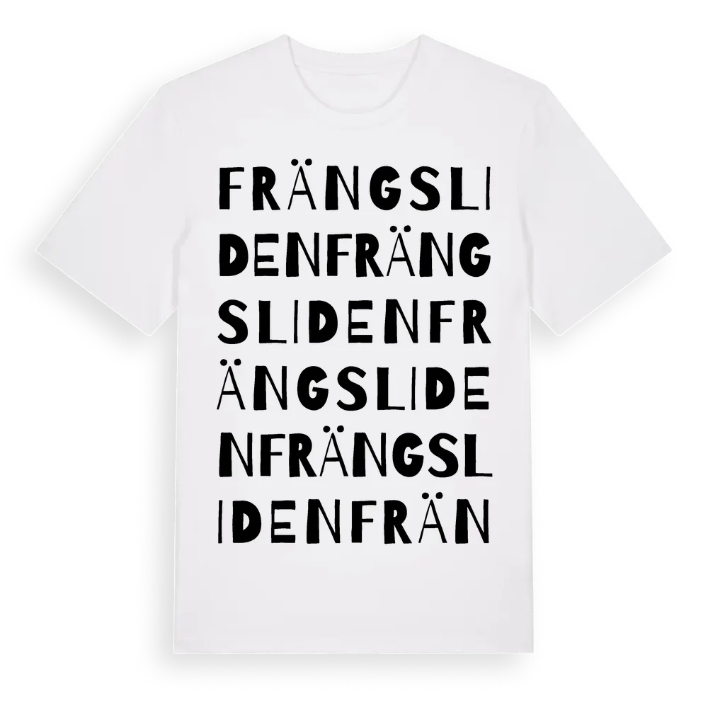 Frängsliden ordlek t-shirt är inspirerad av Frängsliden i Västerbottens län, Sverige. Tröjan är designad för dig som har en speciell koppling till platsen – oavsett om du bor här, har rötterna här eller bara älskar Frängsliden.
