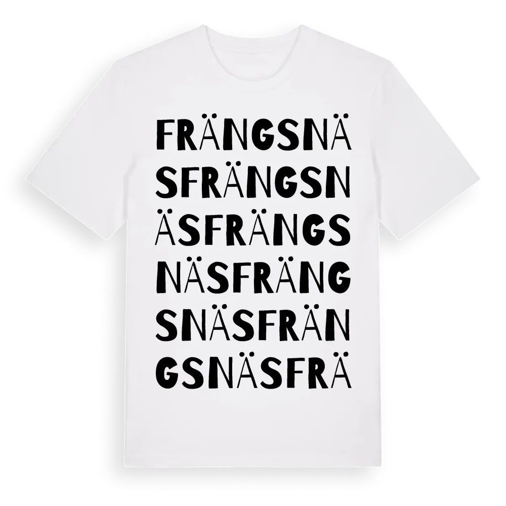 Frängsnäs ordlek t-shirt är inspirerad av Frängsnäs i Västerbottens län, Sverige. Tröjan är designad för dig som har en speciell koppling till platsen – oavsett om du bor här, har rötterna här eller bara älskar Frängsnäs.