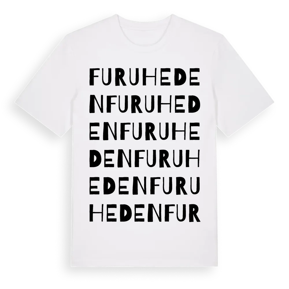 Furuheden ordlek t-shirt är inspirerad av Furuheden i Västerbottens län, Sverige. Tröjan är designad för dig som har en speciell koppling till platsen – oavsett om du bor här, har rötterna här eller bara älskar Furuheden.