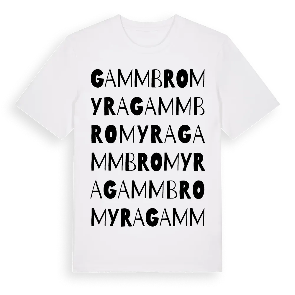 Gammbromyra ordlek t-shirt är inspirerad av byn Gammbromyra i Västerbottens län, Sverige. Tröjan är designad för dig som har en speciell koppling till platsen – oavsett om du bor här, har rötterna här eller bara älskar Gammbromyra.