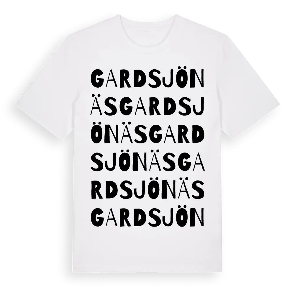 Gardsjönäs ordlek t-shirt är inspirerad av byn Gardsjönäs i Västerbottens län, Sverige. Tröjan är designad för dig som har en speciell koppling till platsen – oavsett om du bor här, har rötterna här eller bara älskar Gardsjönäs.