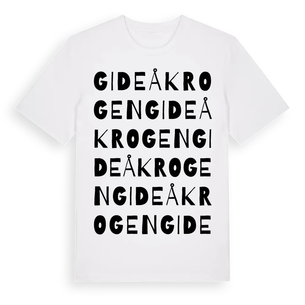 Gideåkrogen ordlek t-shirt är inspirerad av Gideåkrogen i Västerbottens län, Sverige. Tröjan är designad för dig som har en speciell koppling till platsen – oavsett om du bor här, har rötterna här eller bara älskar Gideåkrogen.