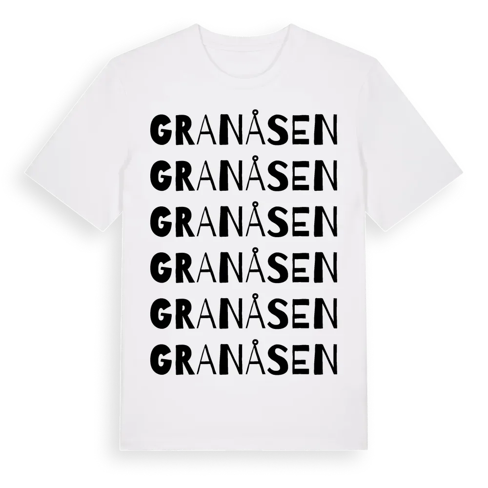 Granåsen ordlek t-shirt är inspirerad av byn Granåsen i Västerbottens län, Sverige. Tröjan är designad för dig som har en speciell koppling till platsen – oavsett om du bor här, har rötterna här eller bara älskar Granåsen.
