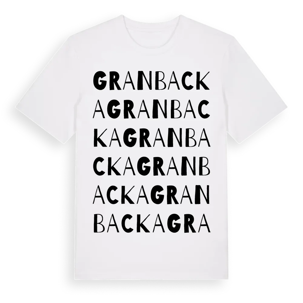 Granbacka ordlek t-shirt är inspirerad av Granbacka i Västerbottens län, Sverige. Tröjan är designad för dig som har en speciell koppling till platsen – oavsett om du bor här, har rötterna här eller bara älskar Granbacka.