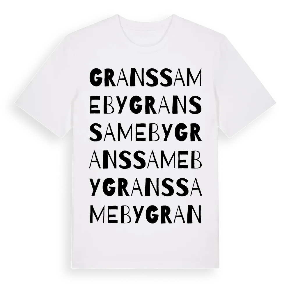 Grans Sameby ordlek t-shirt är inspirerad av Grans Sameby i Västerbottens län, Sverige. Tröjan är designad för dig som har en speciell koppling till platsen – oavsett om du bor här, har rötterna här eller bara älskar Grans Sameby.