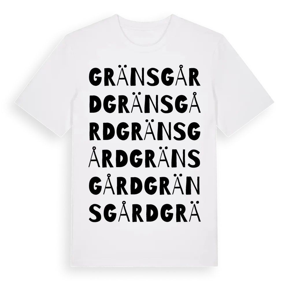 Gränsgård ordlek t-shirt är inspirerad av Gränsgård i Västerbottens län, Sverige. Tröjan är designad för dig som har en speciell koppling till platsen – oavsett om du bor här, har rötterna här eller bara älskar Gränsgård.