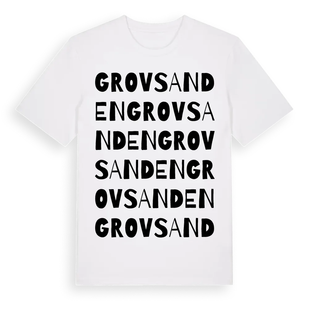 Grovsanden ordlek t-shirt är inspirerad av Grovsanden i Västerbottens län, Sverige. Tröjan är designad för dig som har en speciell koppling till platsen – oavsett om du bor här, har rötterna här eller bara älskar Grovsanden.