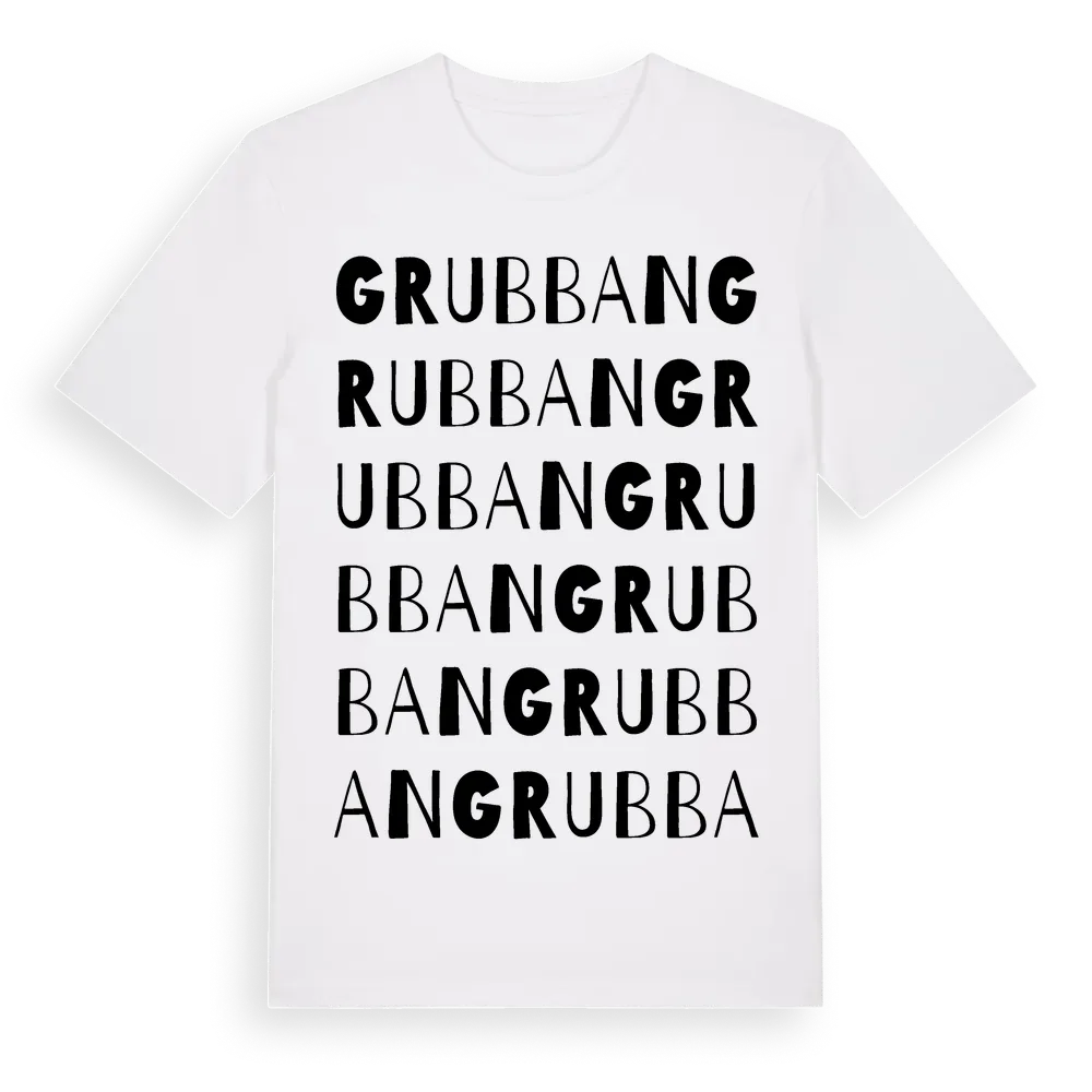 Grubban ordlek t-shirt är inspirerad av Grubban i Västerbottens län, Sverige. Tröjan är designad för dig som har en speciell koppling till platsen – oavsett om du bor här, har rötterna här eller bara älskar Grubban.
