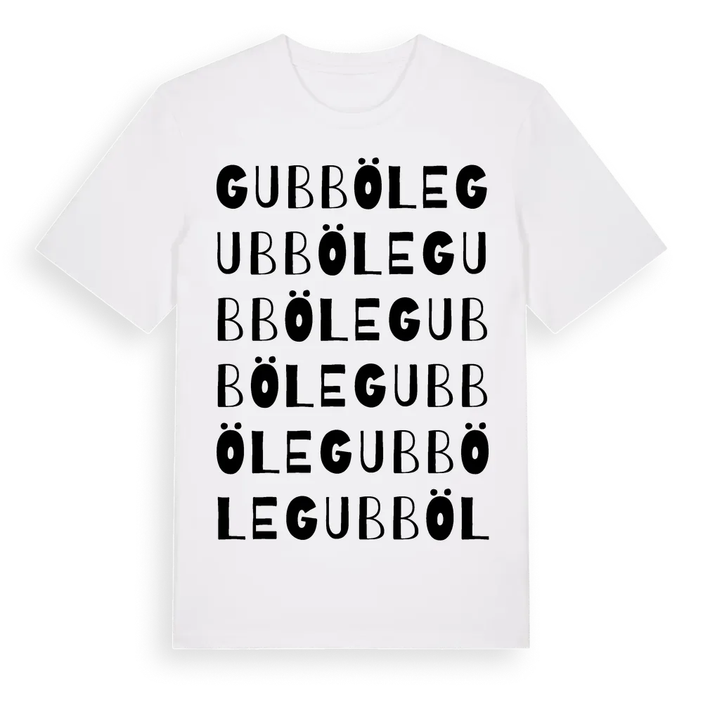 Gubböle ordlek t-shirt är inspirerad av byn Gubböle i Västerbottens län, Sverige. Tröjan är designad för dig som har en speciell koppling till platsen – oavsett om du bor här, har rötterna här eller bara älskar Gubböle.