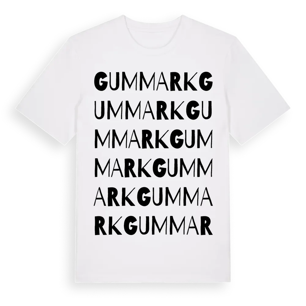 Gummark ordlek t-shirt är inspirerad av byn Gummark i Västerbottens län, Sverige. Tröjan är designad för dig som har en speciell koppling till platsen – oavsett om du bor här, har rötterna här eller bara älskar Gummark.