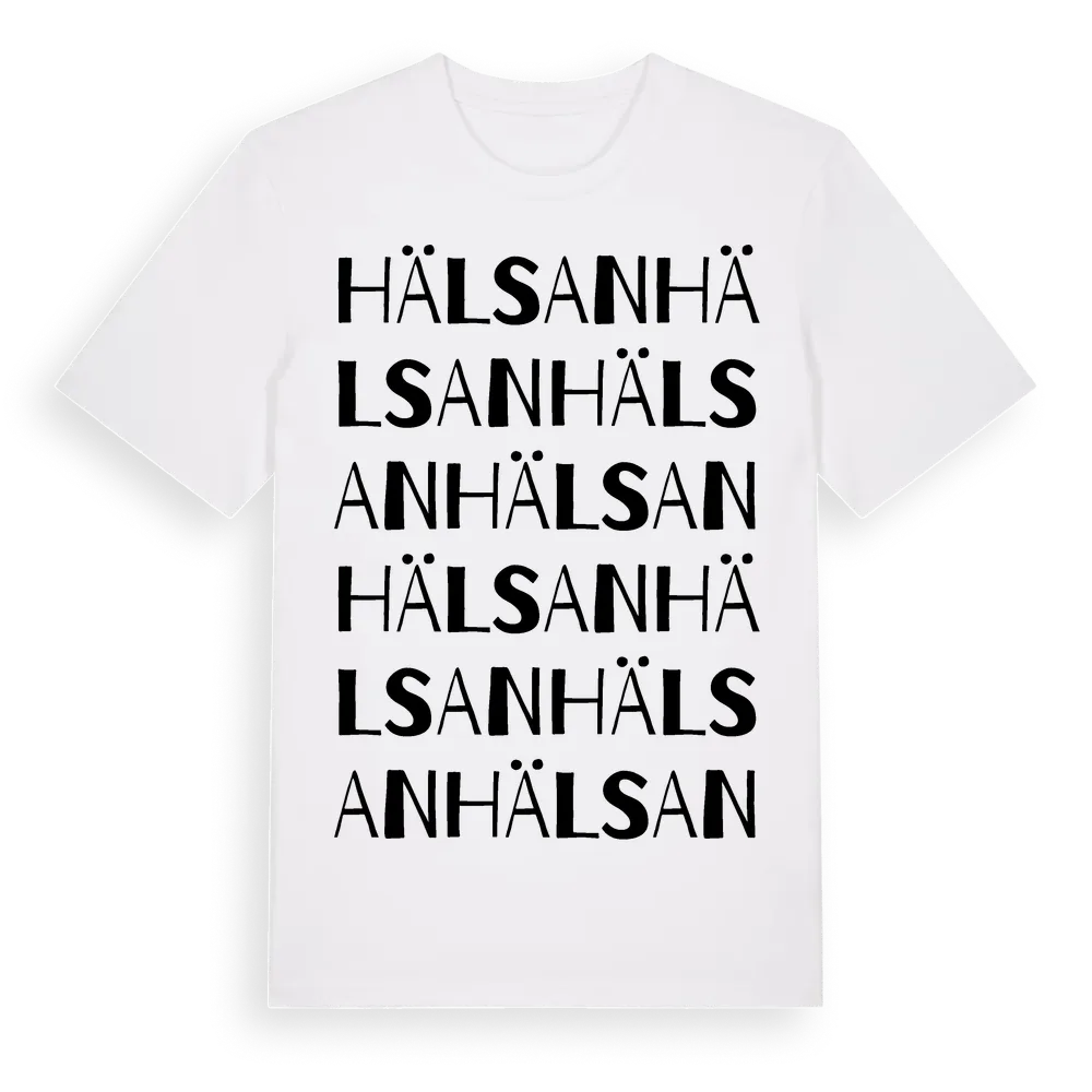 Hälsan ordlek t-shirt är inspirerad av Hälsan i Västerbottens län, Sverige. Tröjan är designad för dig som har en speciell koppling till platsen – oavsett om du bor här, har rötterna här eller bara älskar Hälsan.
