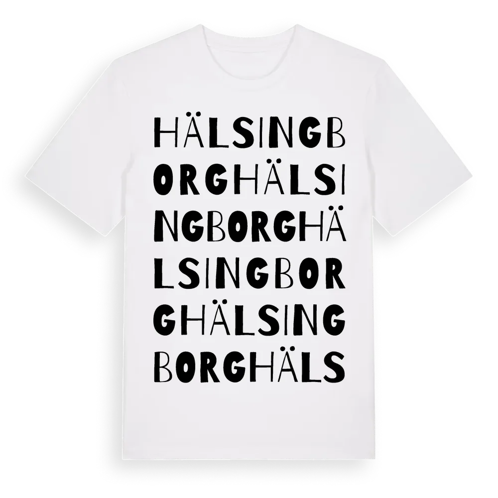 Hälsingborg ordlek t-shirt är inspirerad av byn Hälsingborg i Västerbottens län, Sverige. Tröjan är designad för dig som har en speciell koppling till platsen – oavsett om du bor här, har rötterna här eller bara älskar Hälsingborg.