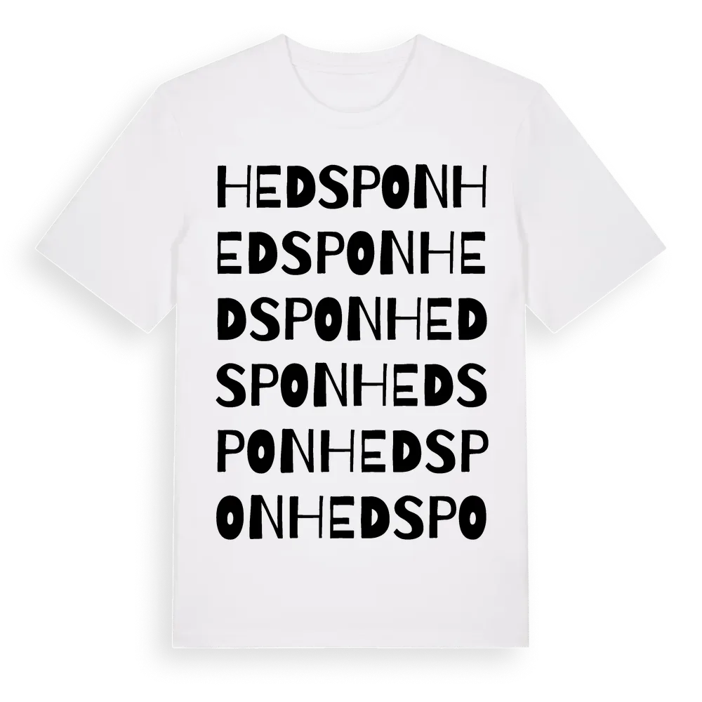 Hedspon ordlek t-shirt är inspirerad av Hedspon i Västerbottens län, Sverige. Tröjan är designad för dig som har en speciell koppling till platsen – oavsett om du bor här, har rötterna här eller bara älskar Hedspon.