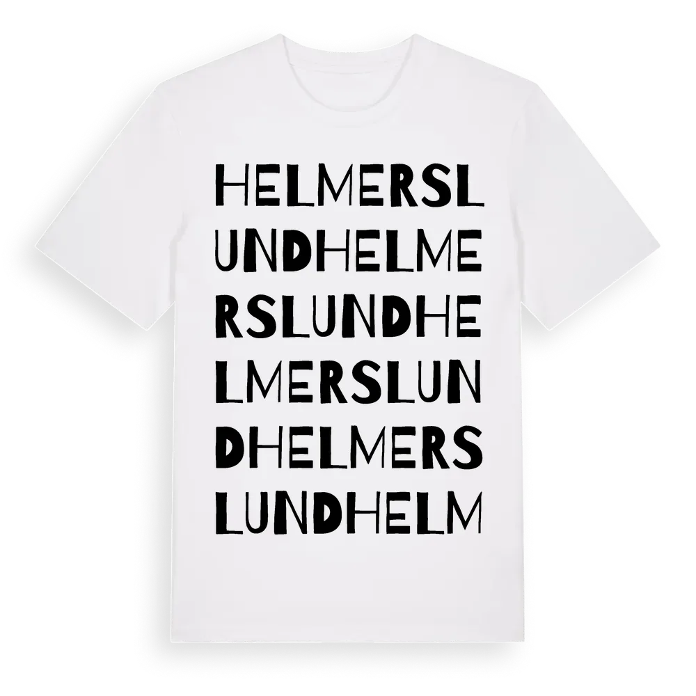 Helmerslund ordlek t-shirt är inspirerad av Helmerslund i Västerbottens län, Sverige. Tröjan är designad för dig som har en speciell koppling till platsen – oavsett om du bor här, har rötterna här eller bara älskar Helmerslund.
