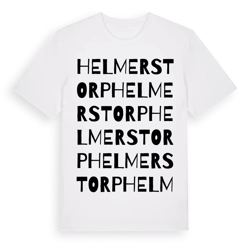 Helmerstorp ordlek t-shirt är inspirerad av Helmerstorp i Västerbottens län, Sverige. Tröjan är designad för dig som har en speciell koppling till platsen – oavsett om du bor här, har rötterna här eller bara älskar Helmerstorp.