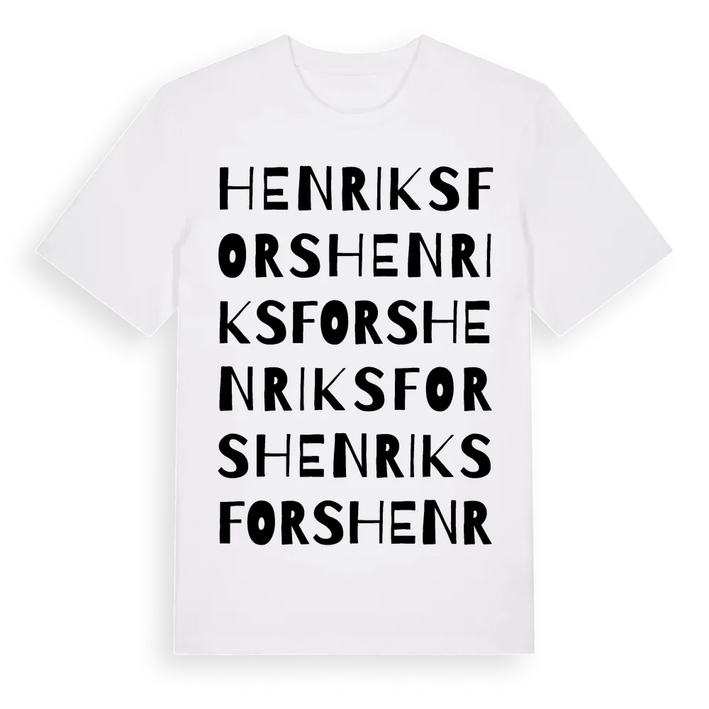 Henriksfors ordlek t-shirt är inspirerad av Henriksfors i Västerbottens län, Sverige. Tröjan är designad för dig som har en speciell koppling till platsen – oavsett om du bor här, har rötterna här eller bara älskar Henriksfors.