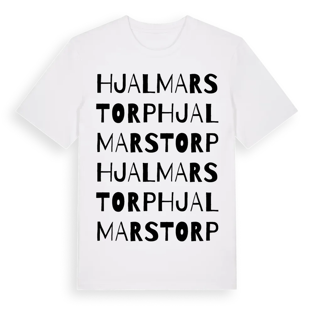 Hjalmarstorp ordlek t-shirt är inspirerad av Hjalmarstorp i Västerbottens län, Sverige. Tröjan är designad för dig som har en speciell koppling till platsen – oavsett om du bor här, har rötterna här eller bara älskar Hjalmarstorp.