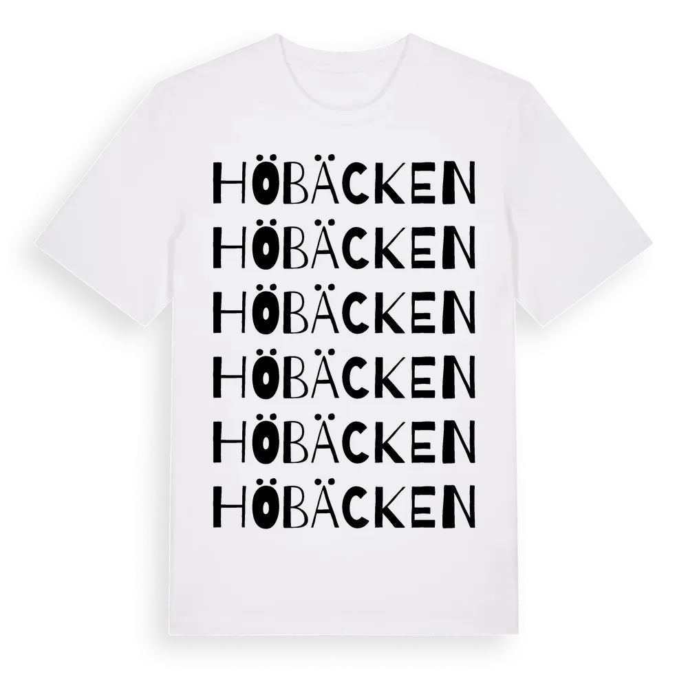 Höbäcken ordlek t-shirt är inspirerad av Höbäcken i Västerbottens län, Sverige. Tröjan är designad för dig som har en speciell koppling till platsen – oavsett om du bor här, har rötterna här eller bara älskar Höbäcken.