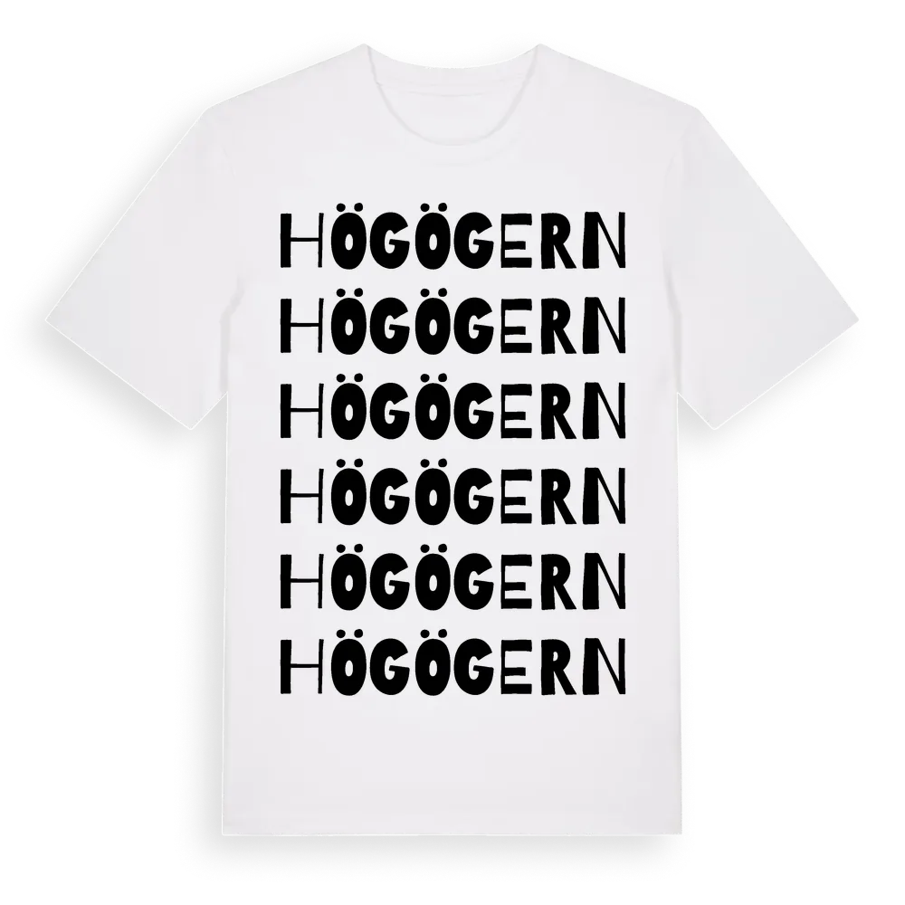 Högögern ordlek t-shirt är inspirerad av ön Högögern i Västerbottens län, Sverige. Tröjan är designad för dig som har en speciell koppling till platsen – oavsett om du bor här, har rötterna här eller bara älskar Högögern.