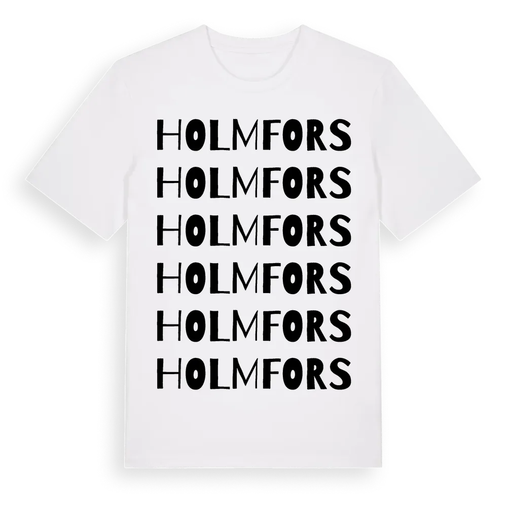 Holmfors ordlek t-shirt är inspirerad av Holmfors i Västerbottens län, Sverige. Tröjan är designad för dig som har en speciell koppling till platsen – oavsett om du bor här, har rötterna här eller bara älskar Holmfors.