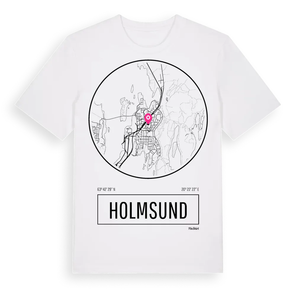 Holmsund t-shirt är inspirerad av byn Holmsund i Västerbottens län, Sverige. Tröjan är designad för dig som har en speciell koppling till platsen – oavsett om du bor här, har rötterna här eller bara älskar Holmsund.