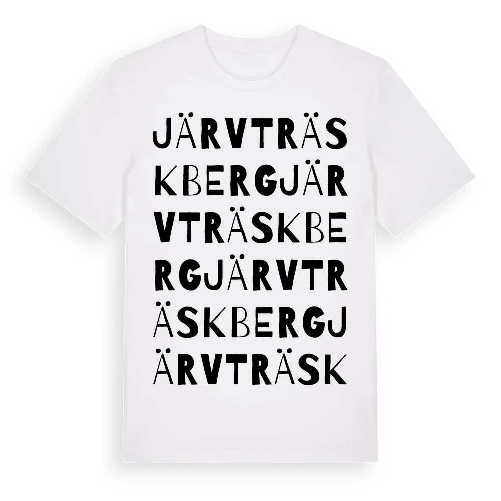 Järvträskberg ordlek t-shirt är inspirerad av Järvträskberg i Västerbottens län, Sverige. Tröjan är designad för dig som har en speciell koppling till platsen – oavsett om du bor här, har rötterna här eller bara älskar Järvträskberg.