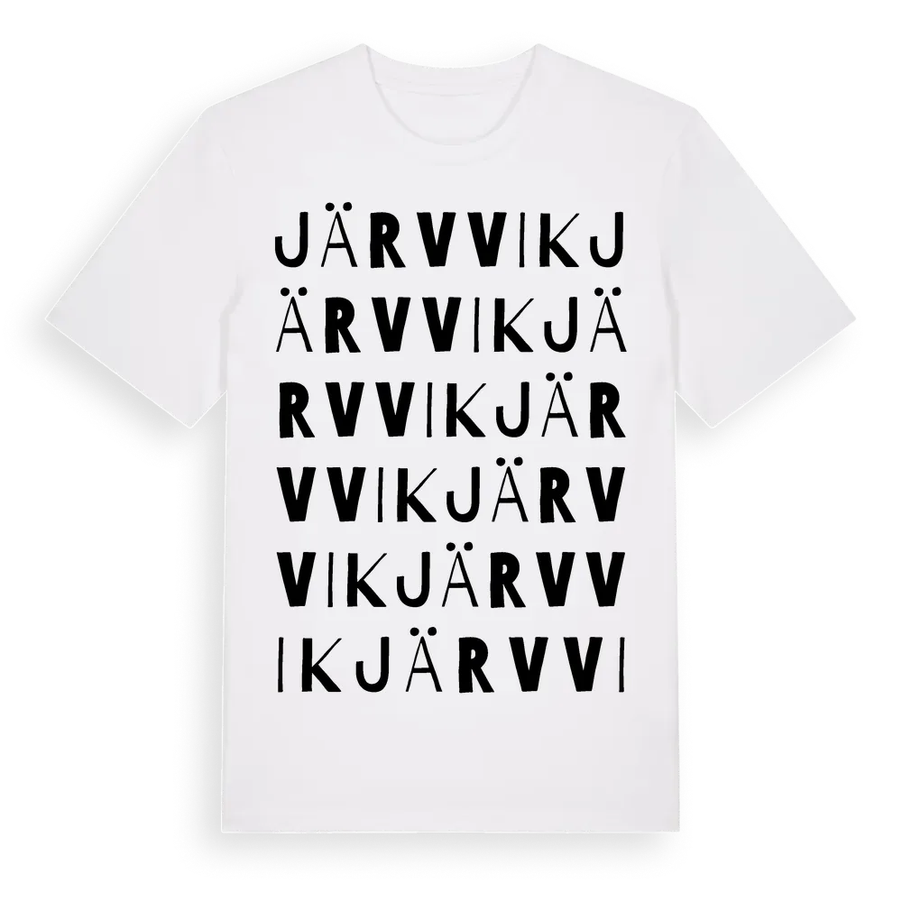 Järvvik ordlek t-shirt är inspirerad av Järvvik i Västerbottens län, Sverige. Tröjan är designad för dig som har en speciell koppling till platsen – oavsett om du bor här, har rötterna här eller bara älskar Järvvik.