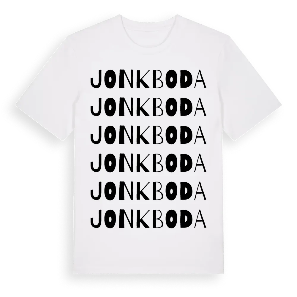 Jonkboda ordlek t-shirt är inspirerad av Jonkboda i Västerbottens län, Sverige. Tröjan är designad för dig som har en speciell koppling till platsen – oavsett om du bor här, har rötterna här eller bara älskar Jonkboda.