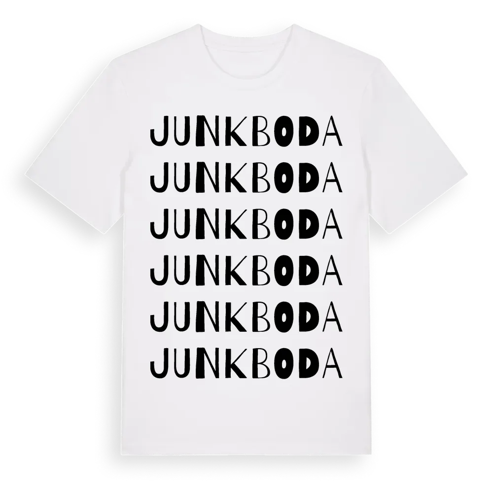 Junkboda ordlek t-shirt är inspirerad av byn Junkboda i Västerbottens län, Sverige. Tröjan är designad för dig som har en speciell koppling till platsen – oavsett om du bor här, har rötterna här eller bara älskar Junkboda.