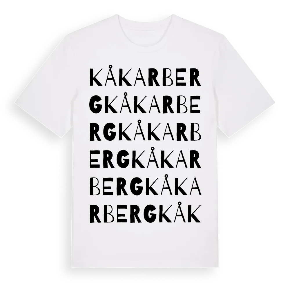 Kåkarberg ordlek t-shirt är inspirerad av Kåkarberg i Västerbottens län, Sverige. Tröjan är designad för dig som har en speciell koppling till platsen – oavsett om du bor här, har rötterna här eller bara älskar Kåkarberg.