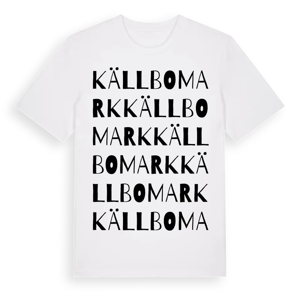 Källbomark ordlek t-shirt är inspirerad av byn Källbomark i Västerbottens län, Sverige. Tröjan är designad för dig som har en speciell koppling till platsen – oavsett om du bor här, har rötterna här eller bara älskar Källbomark.