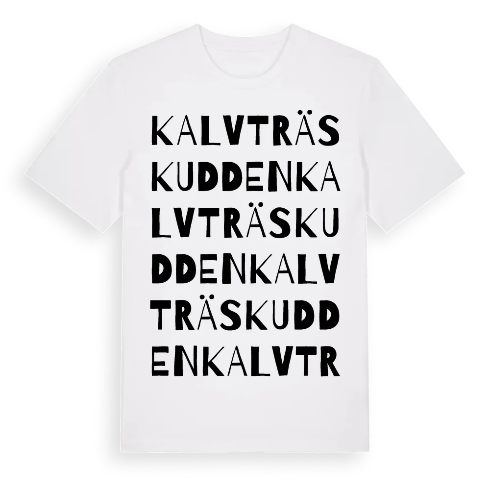 Kalvträskudden ordlek t-shirt är inspirerad av Kalvträskudden i Västerbottens län, Sverige. Tröjan är designad för dig som har en speciell koppling till platsen – oavsett om du bor här, har rötterna här eller bara älskar Kalvträskudden.