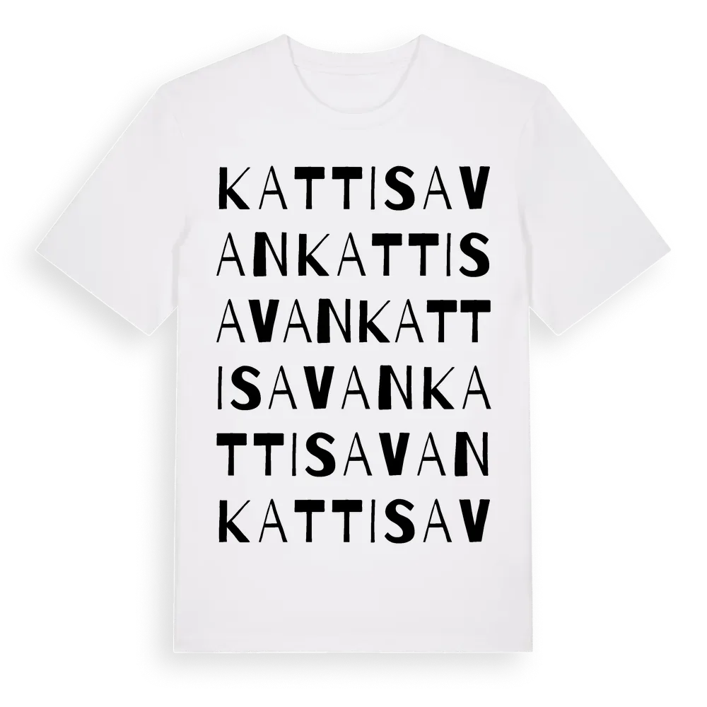 Kattisavan ordlek t-shirt är inspirerad av byn Kattisavan i Västerbottens län, Sverige. Tröjan är designad för dig som har en speciell koppling till platsen – oavsett om du bor här, har rötterna här eller bara älskar Kattisavan.