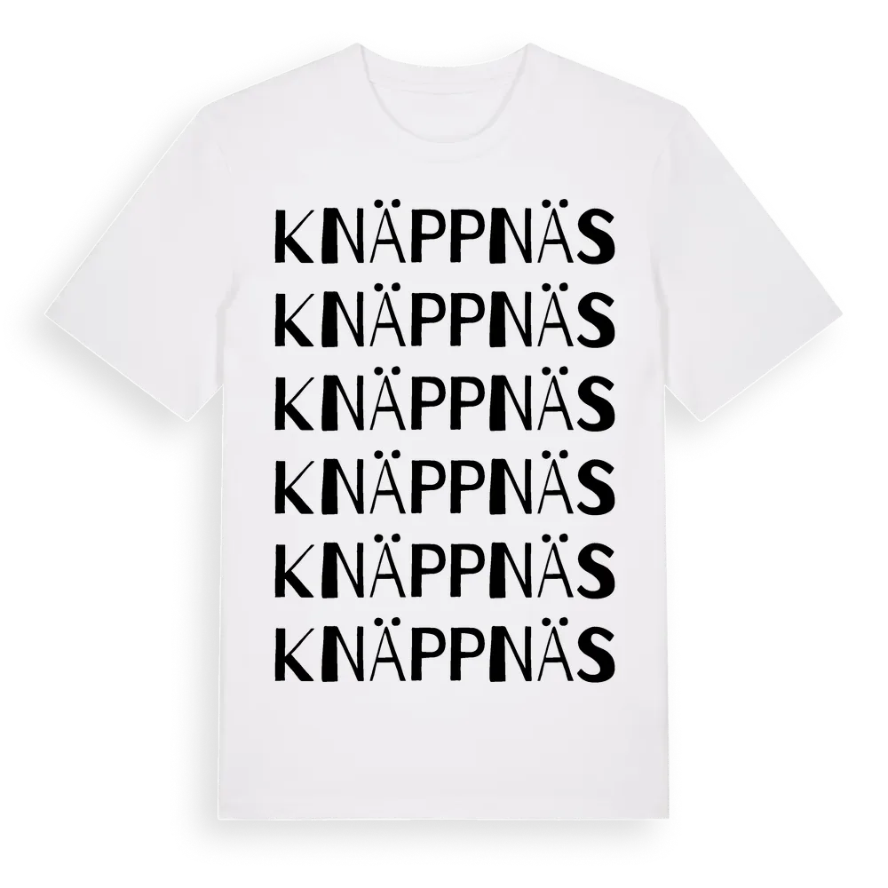 Knäppnäs ordlek t-shirt är inspirerad av Knäppnäs i Västerbottens län, Sverige. Tröjan är designad för dig som har en speciell koppling till platsen – oavsett om du bor här, har rötterna här eller bara älskar Knäppnäs.