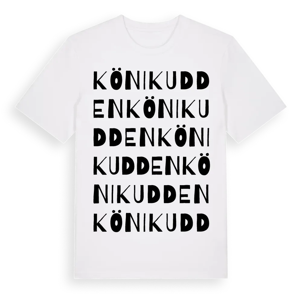 Könikudden ordlek t-shirt är inspirerad av Könikudden i Västerbottens län, Sverige. Tröjan är designad för dig som har en speciell koppling till platsen – oavsett om du bor här, har rötterna här eller bara älskar Könikudden.