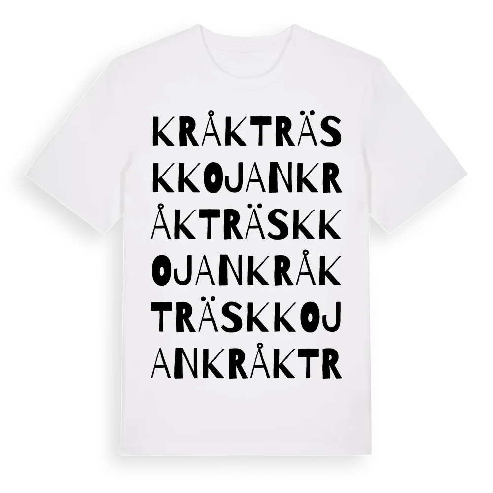 Kråkträskkojan ordlek t-shirt är inspirerad av Kråkträskkojan i Västerbottens län, Sverige. Tröjan är designad för dig som har en speciell koppling till platsen – oavsett om du bor här, har rötterna här eller bara älskar Kråkträskkojan.