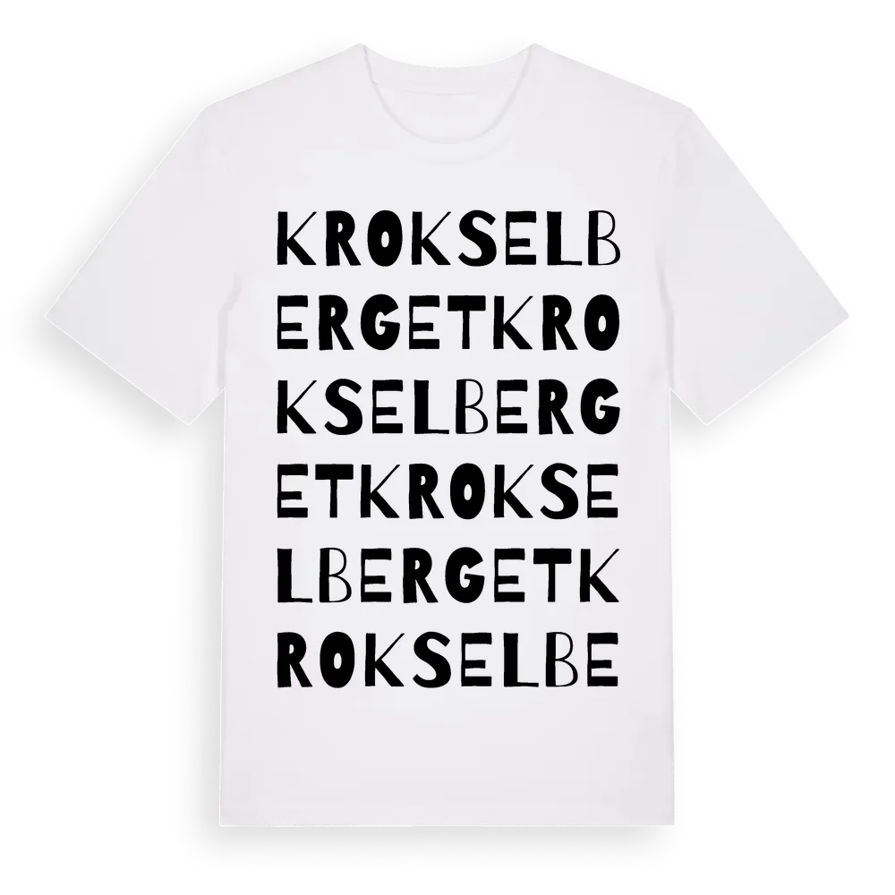 Krokselberget ordlek t-shirt är inspirerad av Krokselberget i Västerbottens län, Sverige. Tröjan är designad för dig som har en speciell koppling till platsen – oavsett om du bor här, har rötterna här eller bara älskar Krokselberget.