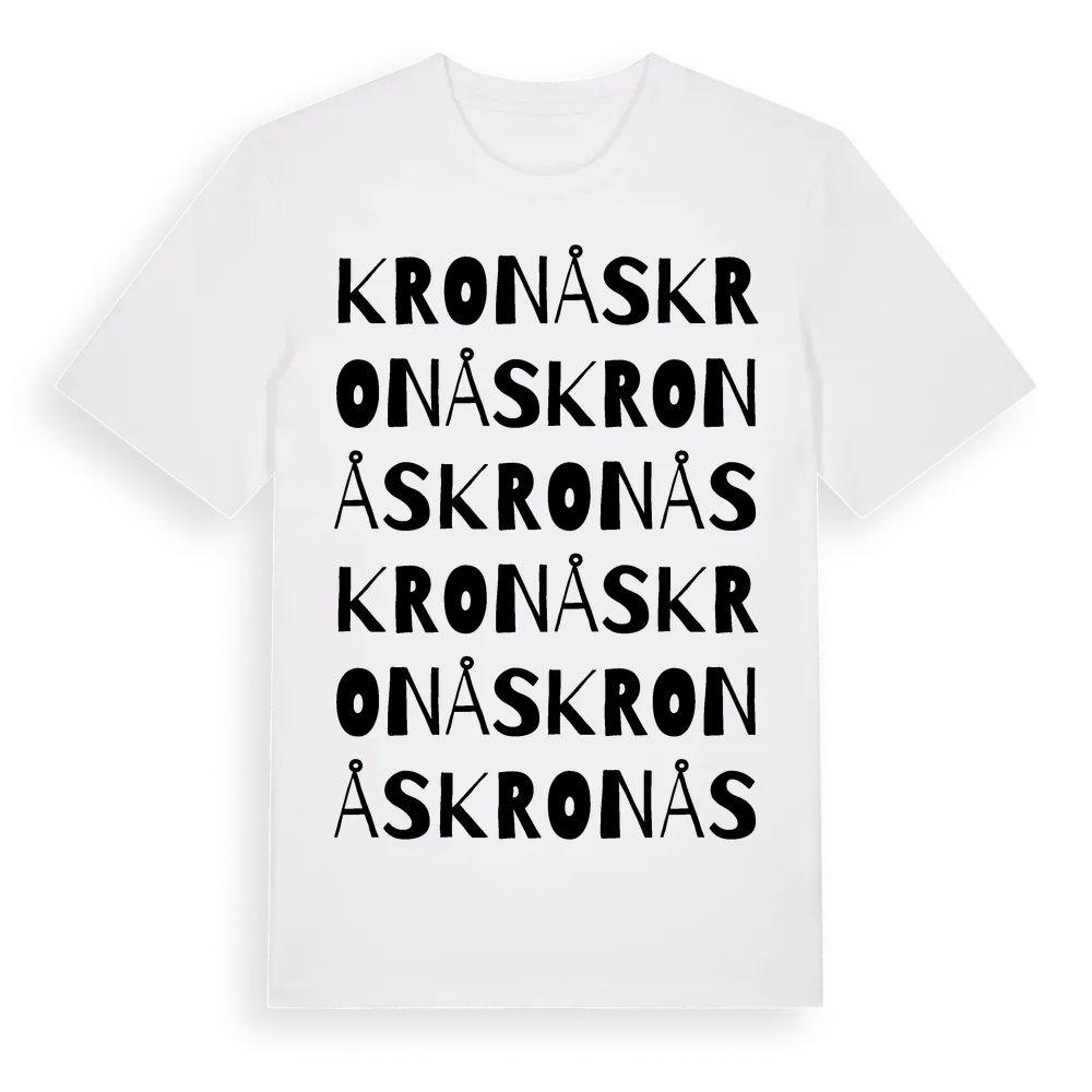 Kronås ordlek t-shirt är inspirerad av Kronås i Västerbottens län, Sverige. Tröjan är designad för dig som har en speciell koppling till platsen – oavsett om du bor här, har rötterna här eller bara älskar Kronås.