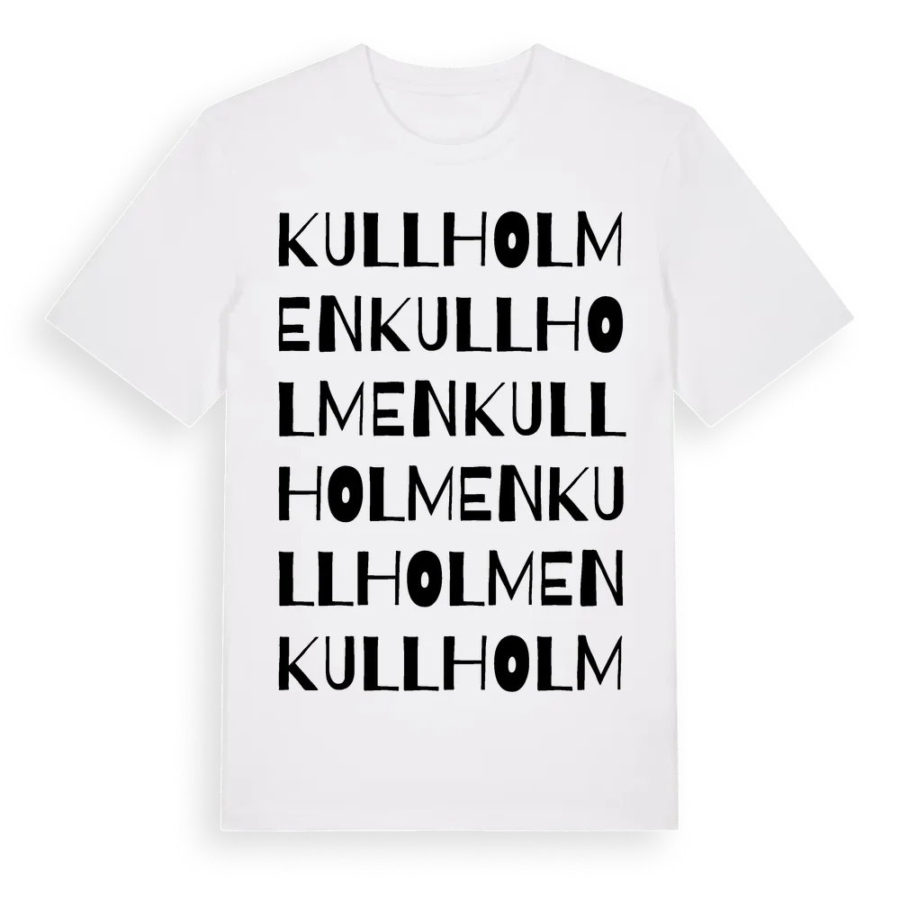 Kullholmen ordlek t-shirt är inspirerad av byn Kullholmen i Västerbottens län, Sverige. Tröjan är designad för dig som har en speciell koppling till platsen – oavsett om du bor här, har rötterna här eller bara älskar Kullholmen.