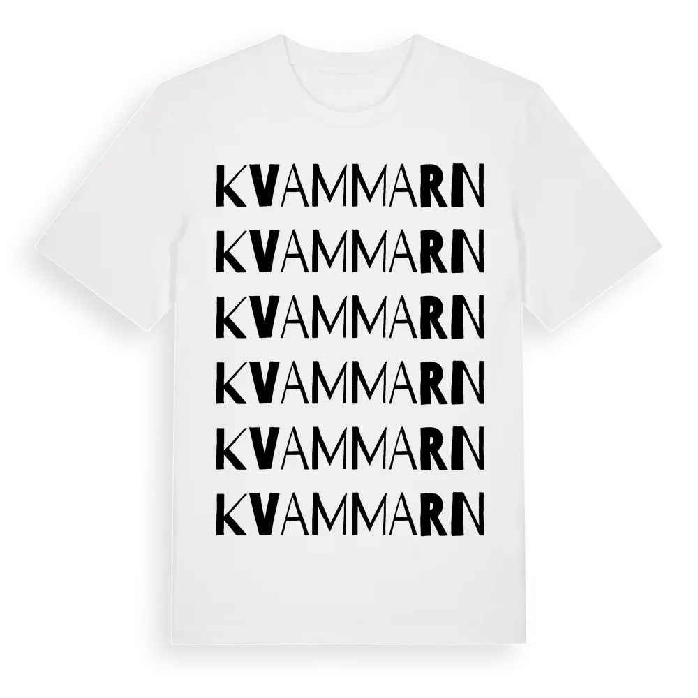 Kvammarn ordlek t-shirt är inspirerad av byn Kvammarn i Västerbottens län, Sverige. Tröjan är designad för dig som har en speciell koppling till platsen – oavsett om du bor här, har rötterna här eller bara älskar Kvammarn.