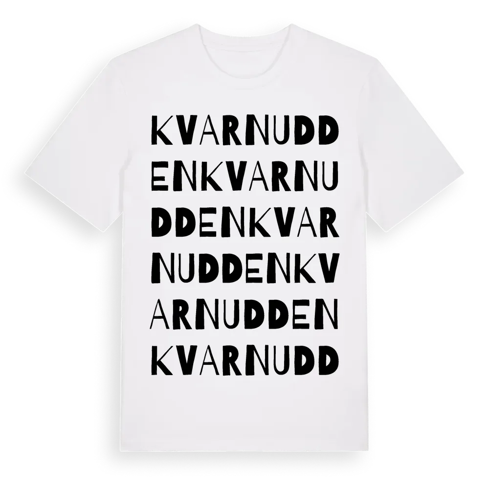 Kvarnudden ordlek t-shirt är inspirerad av Kvarnudden i Västerbottens län, Sverige. Tröjan är designad för dig som har en speciell koppling till platsen – oavsett om du bor här, har rötterna här eller bara älskar Kvarnudden.