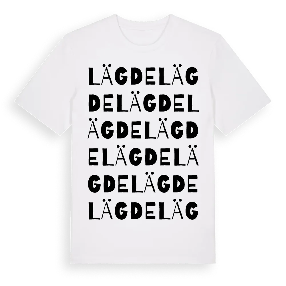 Lägde ordlek t-shirt är inspirerad av byn Lägde i Västerbottens län, Sverige. Tröjan är designad för dig som har en speciell koppling till platsen – oavsett om du bor här, har rötterna här eller bara älskar Lägde.