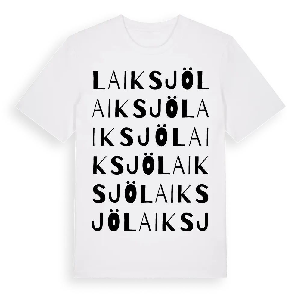 Laiksjö ordlek t-shirt är inspirerad av byn Laiksjö i Västerbottens län, Sverige. Tröjan är designad för dig som har en speciell koppling till platsen – oavsett om du bor här, har rötterna här eller bara älskar Laiksjö.