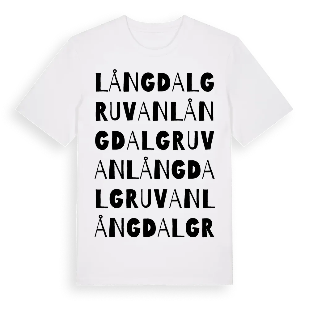 Långdalgruvan ordlek t-shirt är inspirerad av Långdalgruvan i Västerbottens län, Sverige. Tröjan är designad för dig som har en speciell koppling till platsen – oavsett om du bor här, har rötterna här eller bara älskar Långdalgruvan.