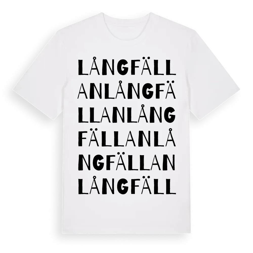 Långfällan ordlek t-shirt är inspirerad av Långfällan i Västerbottens län, Sverige. Tröjan är designad för dig som har en speciell koppling till platsen – oavsett om du bor här, har rötterna här eller bara älskar Långfällan.