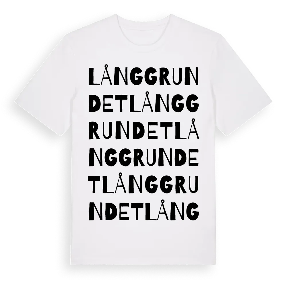 Långgrundet ordlek t-shirt är inspirerad av Långgrundet i Västerbottens län, Sverige. Tröjan är designad för dig som har en speciell koppling till platsen – oavsett om du bor här, har rötterna här eller bara älskar Långgrundet.