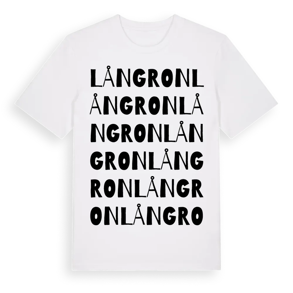 Långron ordlek t-shirt är inspirerad av byn Långron i Västerbottens län, Sverige. Tröjan är designad för dig som har en speciell koppling till platsen – oavsett om du bor här, har rötterna här eller bara älskar Långron.